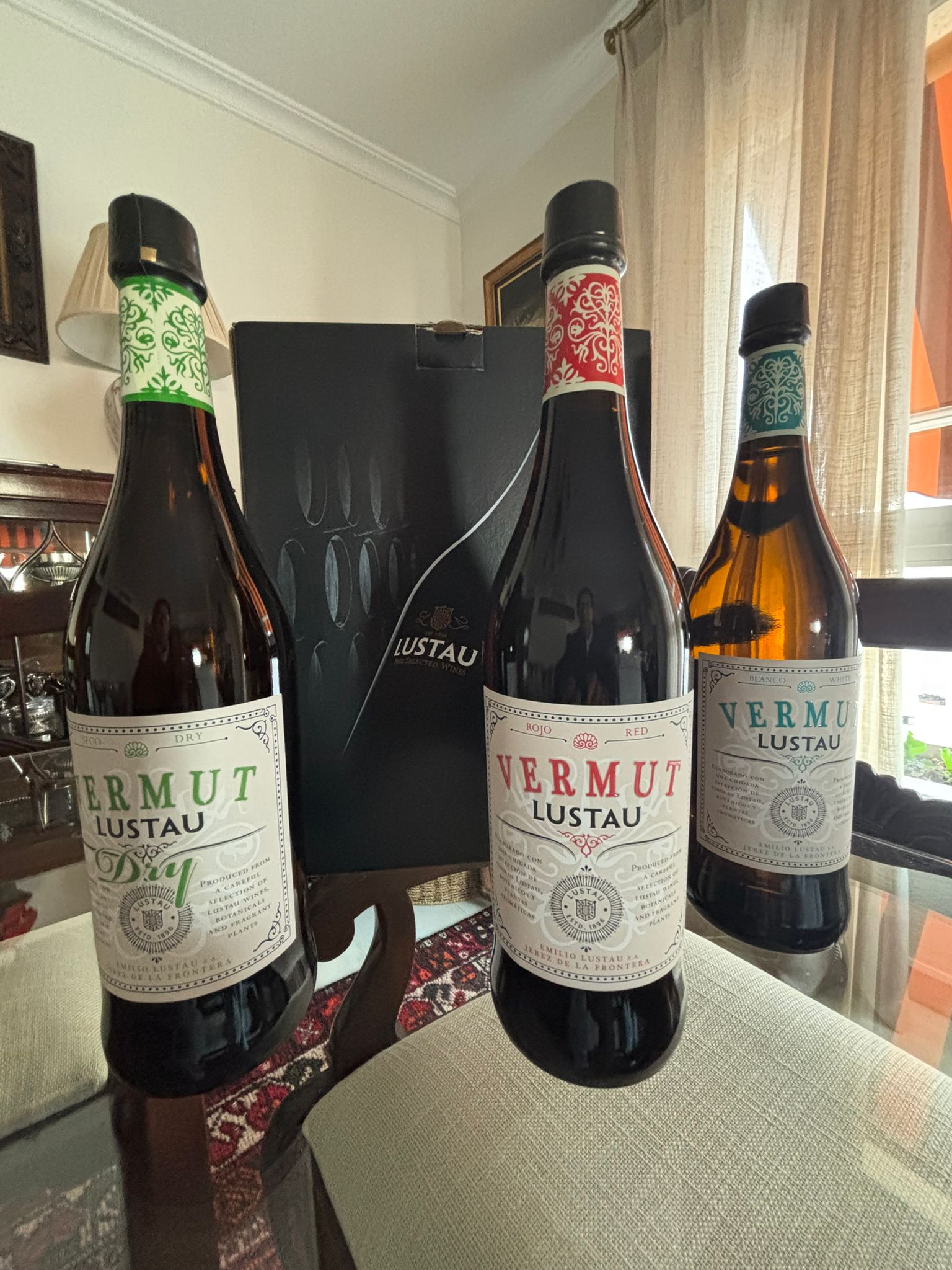 Bodegas Caballero nos envía un estuche de 3 botellas de Vermut Lustau Rojo, blanco y Dry